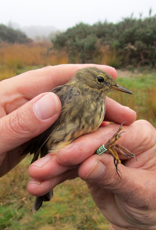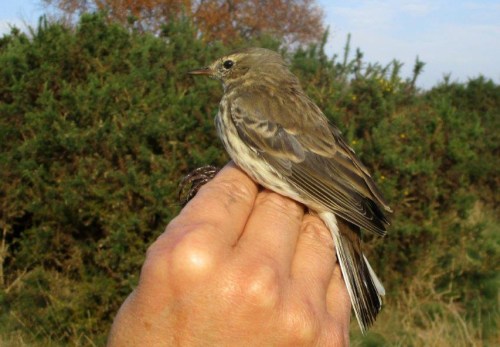 We are still ringing at Durlston whenever the wind and rain allows it. Migration of grounded migrants has tailed off considerably but vis mig continue apace with large numbers of Woodpigeons, Goldfinches and Linnets overhead.