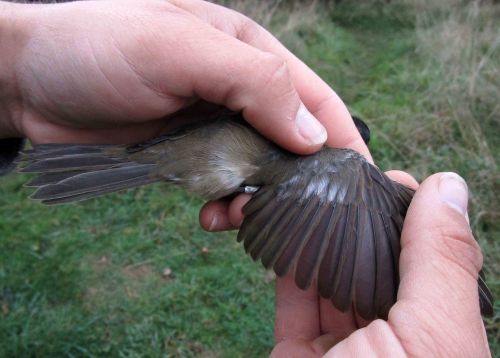As always we ringed large numbers of Blackcaps throughout the autumn. This bird shows unusual white feathering on the greater coverts, this is not staining and it was bilateral. Birders (especially those new to the hobby) should consider an aberrantly plumaged or partially leucistic individual when confronted with a bird with unusual marking. Although not really applicable in this case, leucistic finches and sparrows have been identified as Snow Buntings and all manner of other rarities by the unwary.