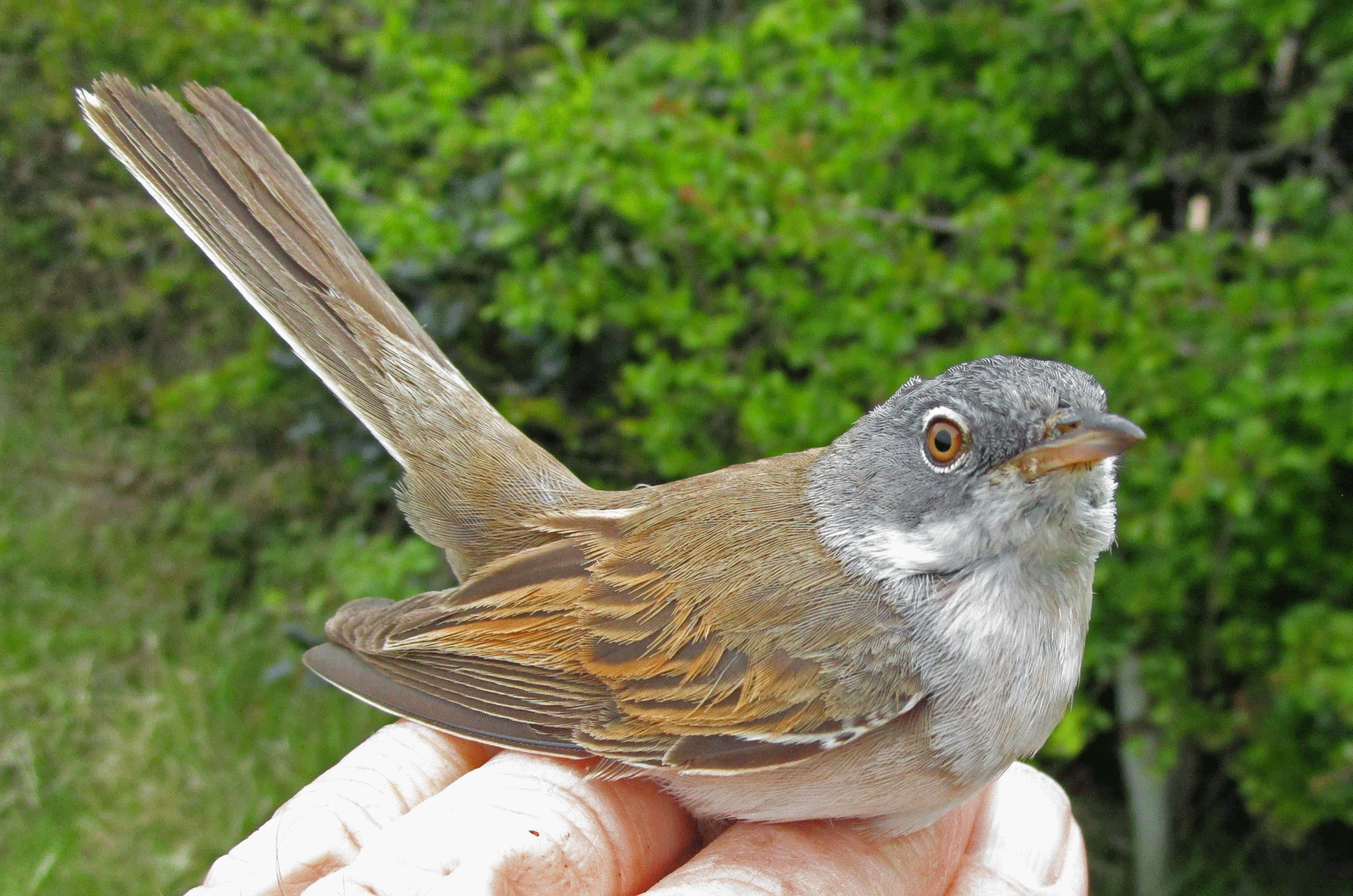 July/August is the most fascinating time of the year for the ringer as young birds have either to start/are undergoing/or have completed the post-juvenile moult and adults are undergoing a full or partial moult depending on moult strategy of the species concerned. This 1st year Garden Warbler has undergone it’s partial post-juvenile moult before migrating and will undergo a complete moult during the winter in Africa. This species is very much the exception in the Sylvid babblers (members of this genus have been shown to be babblers and are not related to other warblers at all) as adults also have a complete moult in Africa. In almost all of the other Sylvias adults have a complete moult before migrating and hence have fresh plumage just like 1st year birds, making ageing more tricky.