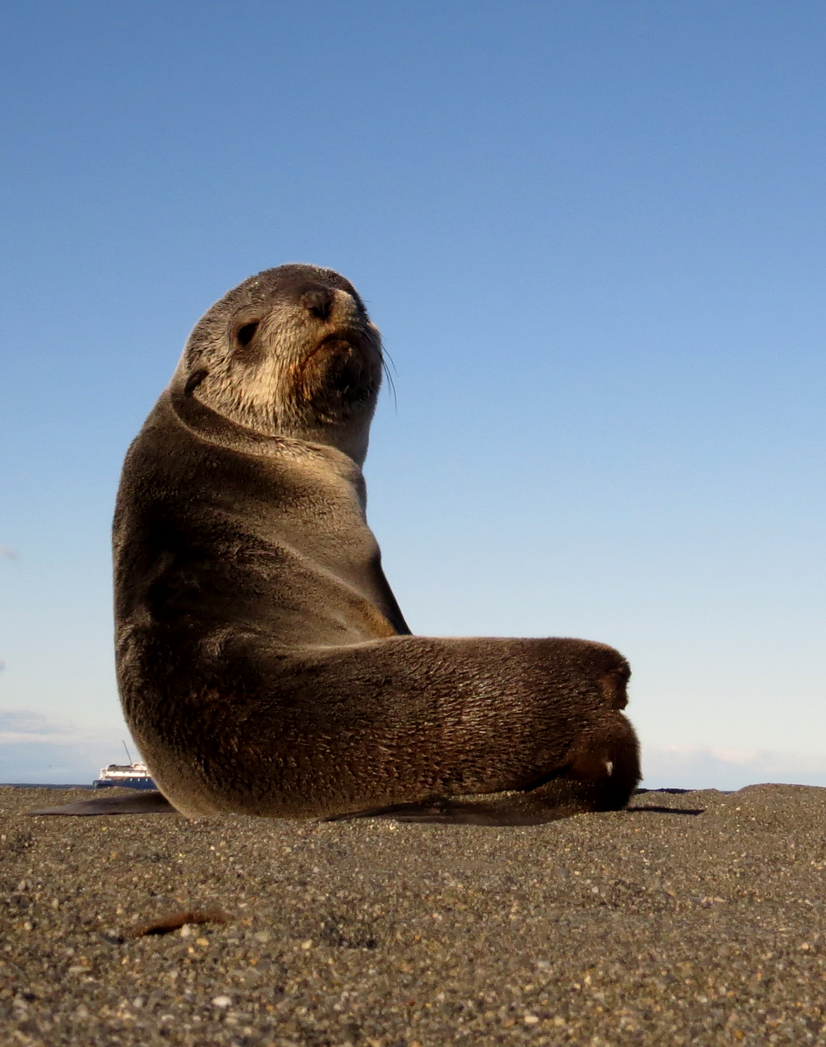 The discovery of number 12 was a real surprise. We were at the Antipodes Islands on the Sub-antarctic Island cruise (exactly the opposite side of the world to London, hence the name). Leader Pete Morris was off on zodiac cruise with some clients and I was waiting my turn. I found this all dark ‘mantled’ albatross gliding around the cliffs, I was so chuffed to have found a vagrant and couldn’t wait to tell Pete, but when he got back I found that he’d seen it and photographed it from the zodiac. A somewhat enlarged version of © Pete Morris’s photo.