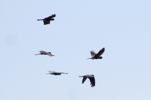 Whistling Kites were quite common (primary moult in this individual gives it an unusual outline) ….
