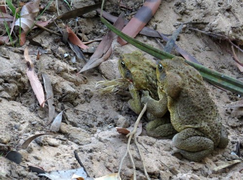 One species we didn’t want to see was the infamous cane toad. The introduction of these toads to Australia has been described as the worst decision in the country’s history. Cane toads, native to the Neotropics were introduced to coastal Queensland in 1935 to control the native cane beetle which was damaging sugar cane production. Cane Toad numbers now exceed 200 million and have spread as far west as the Kimberley. They have failed to control cane beetles but due to their poisonous neck glands, which can clearly be seen in the photo, they have almost wiped out native predators like quolls, goannas and snakes and have killed many cats and dogs plus some humans who have inadvertently come into contact with their poison. They predate many smaller species and compete with others for food supplies. By killing goannas the number of crocodiles has risen due to reduced predation of their eggs and a huge decrease in dung beetles due to the toad has resulted in a massive increase in cow dung which may lead to disease outbreaks in cattle. They are a classic example of the folly of introducing a predator into a region where the native wildlife has no natural defense against them.
