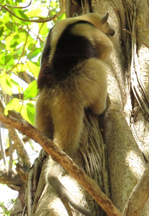 …. but the species of the day and mammal of the trip was this Northern Tamandua, a species of arboreal anteater that Hermann spotted from the moving bus! It slowly climbed down the bough ….