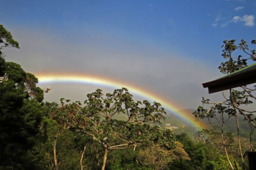 As well as catering to birders, the area has several canopy walkways to allow the naturalist and the curious to get close to treetop wildlife, multiple zip-lines for adrenaline junkies and a nice line in rainbows. East of the continental divide at 1500m it is pretty wet, but to the west you can see the clouds billowing over and evaporating in the dry Pacific air. It was quite windy, especially in the vicinity of our hotel which was in an exposed location.