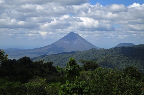 We were only one night at the nice hotel. Leaving most of our gear there the following day we hiked down a wide trail for a couple of hours to a research station at San Gerado on the Caribbean slope where we stayed for two nights. On arrival we had a stunning view of Volcan Arenal further to the east.