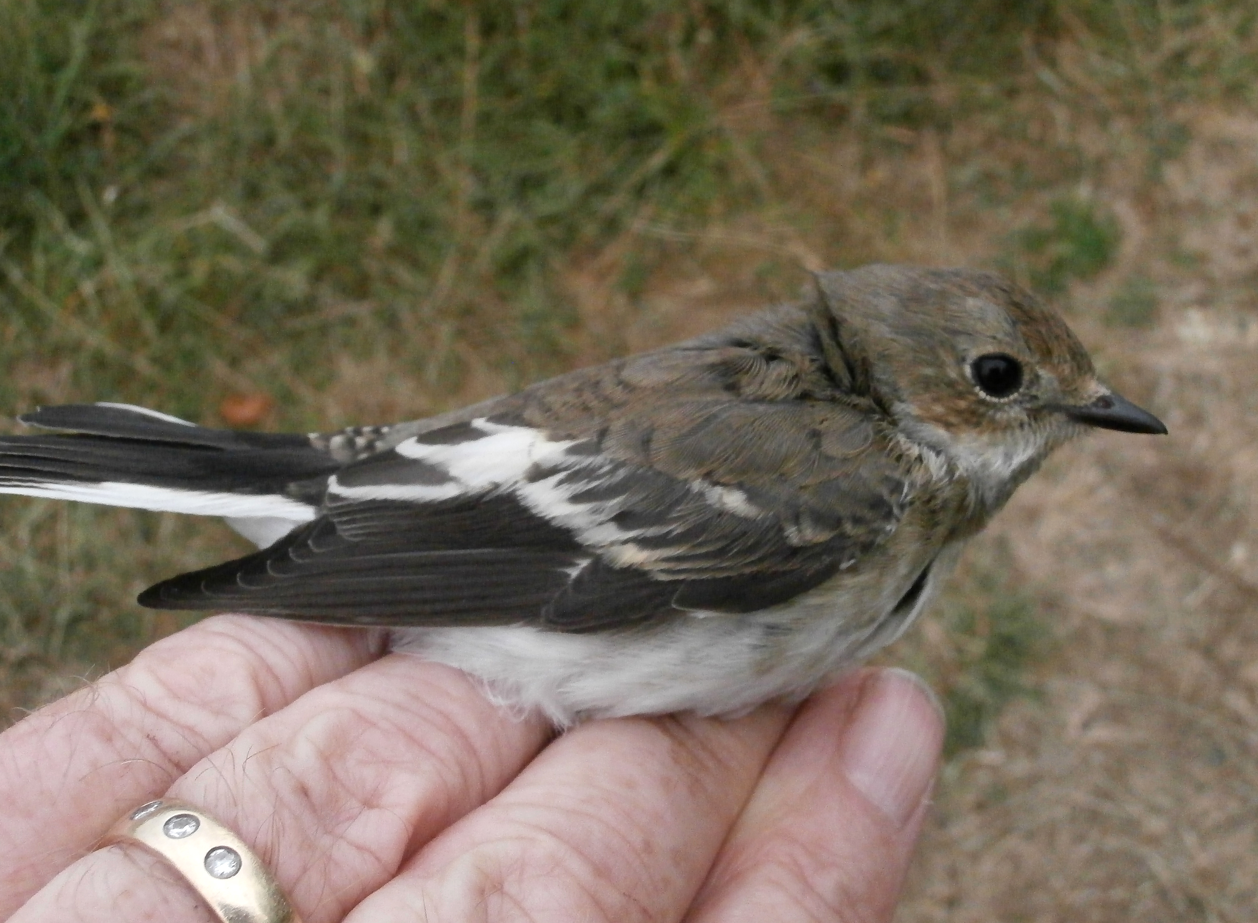 Breeding mainly in the west of Britain – Devon, Wales and SE Scotland, Pied Flycatchers are pretty scarce on migration where we ring, however the trapping area comprises mainly of low scrub and is not ideal for these arboreal birds.