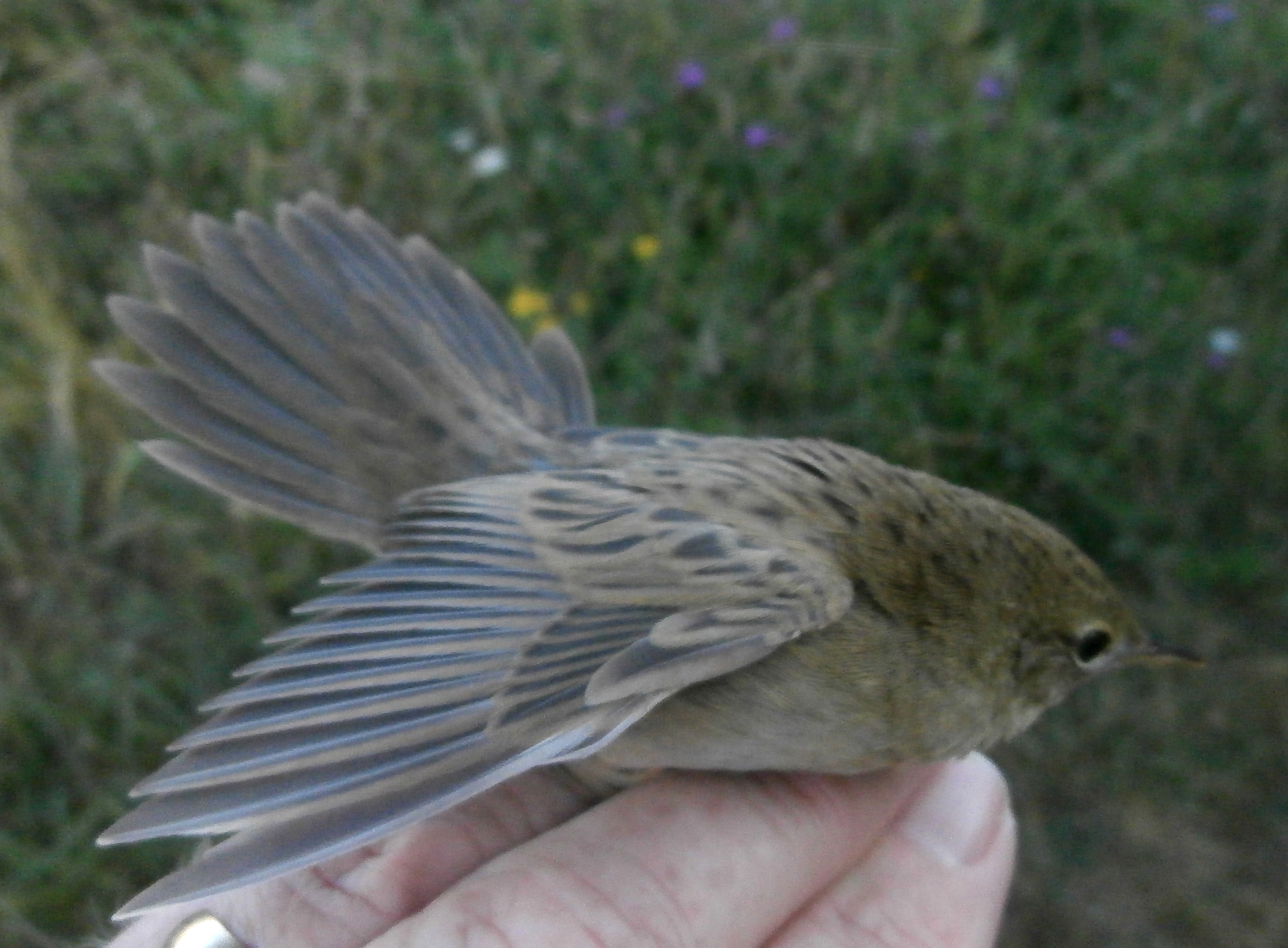 Grasshopper Warblers, with their graduated tails and long speckled undertail coverts are always a delight to ring. So far this autumn we have ringed 17 at Lytchett Bay and 7 at Durlston. Because of its secretive habits this species has one of the lowest recovery rates of all ringed birds and much is still unknown about its movements and life history.