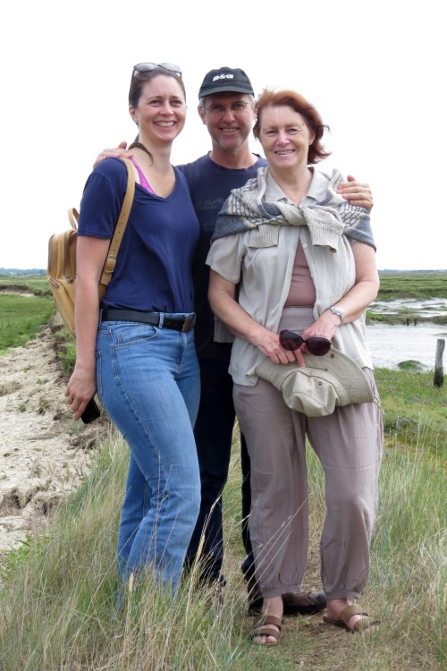 Anita, her husband John and Margaret on a coastal footpath in Essex.