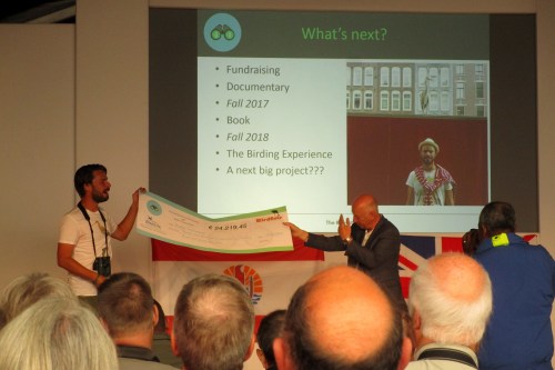 Arjan got a lot of sponsorship for his record-breaking and was able to present a cheque to BirdLife International’s preventing extinction program of (I think) 24,000 Euros.