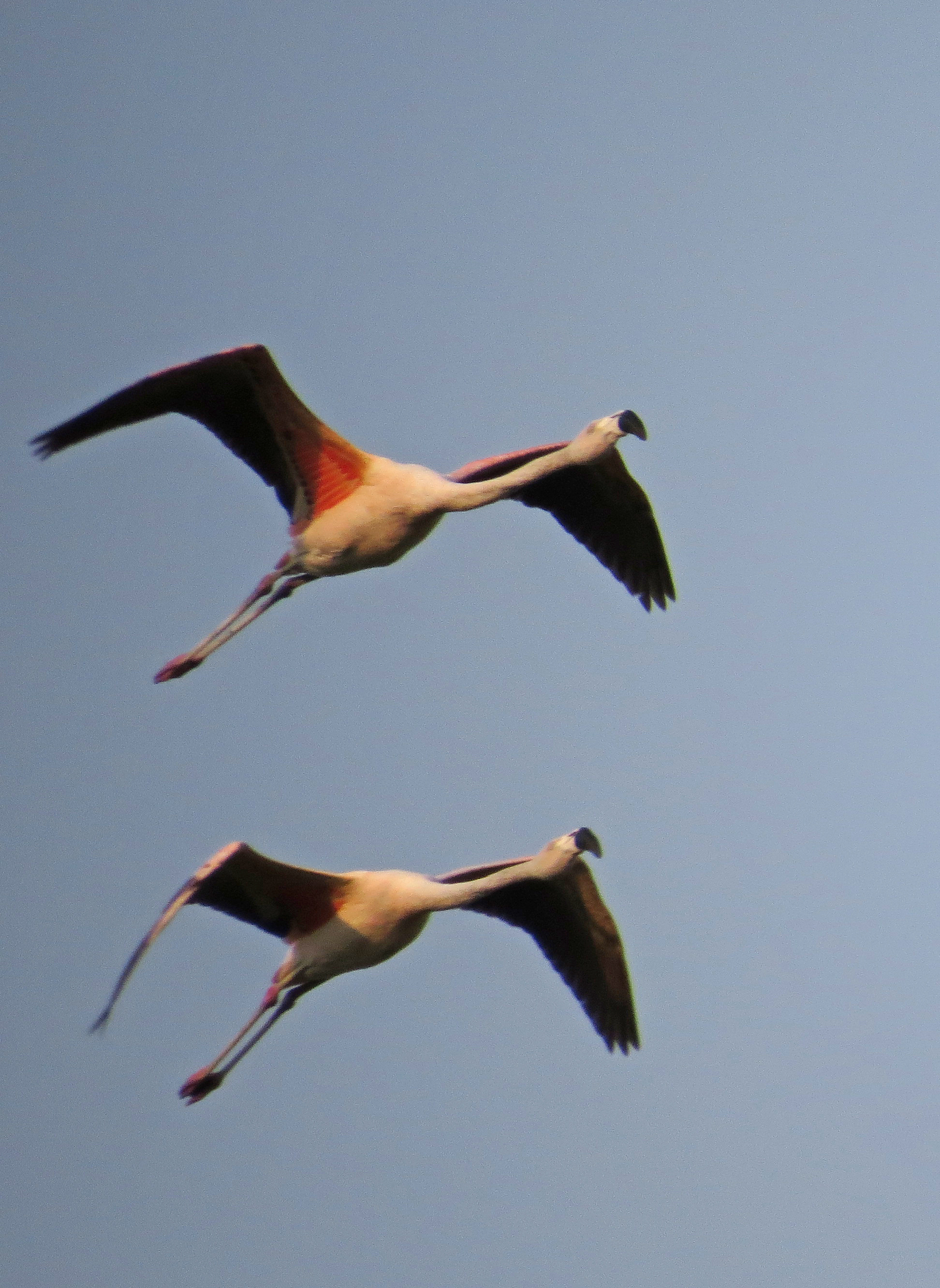 Chilean Flamingos are the most widespread of the four New World species and can be easily identified by their red ‘knees’ (actually the tibio-tarsal joint or ankle).
