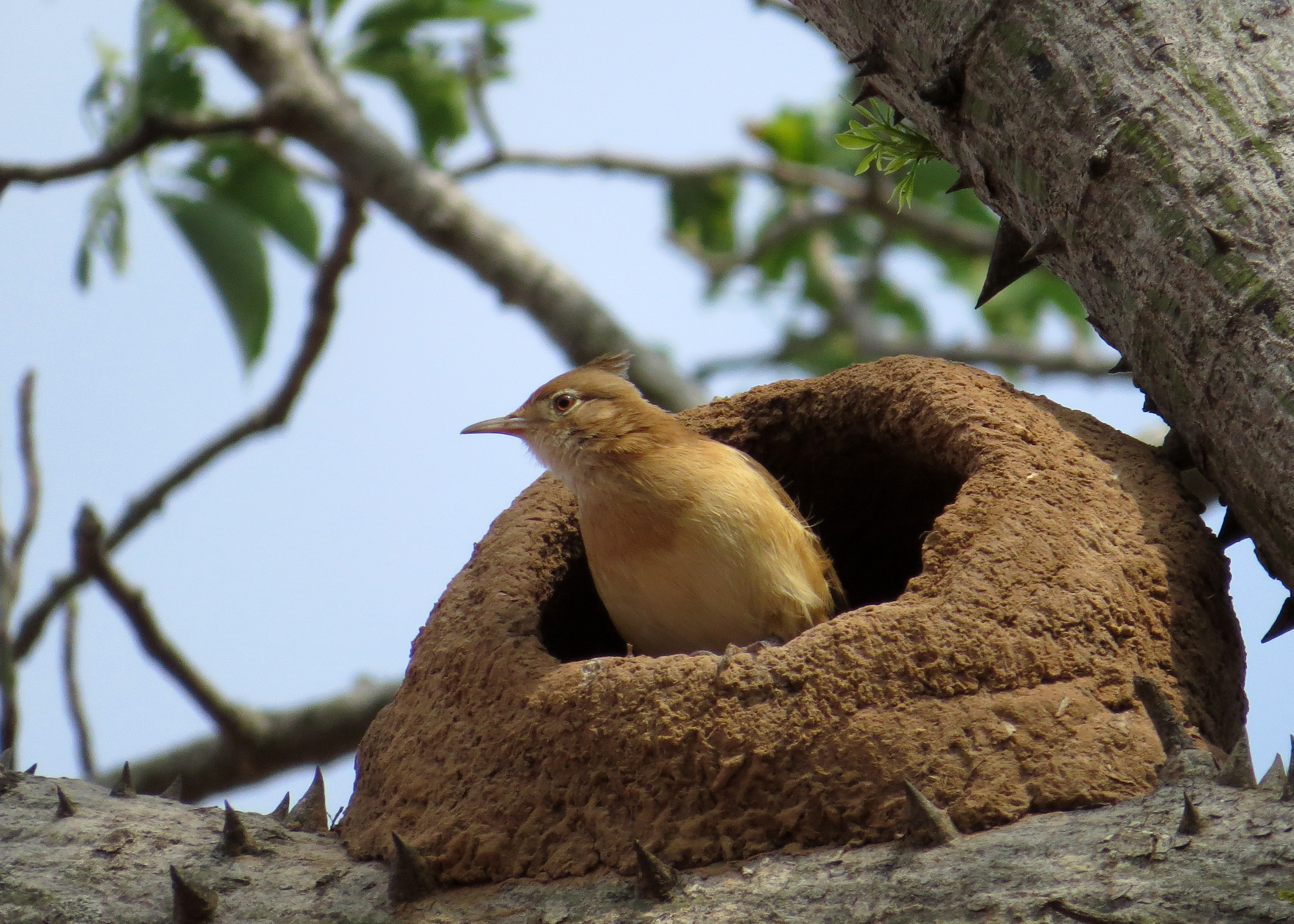 …. and Crested Hornero. Hornero is derived from the Spanish for oven because of their oven-shaped mud nests and the family name the Furnariidae or ovenbirds share this derivation.