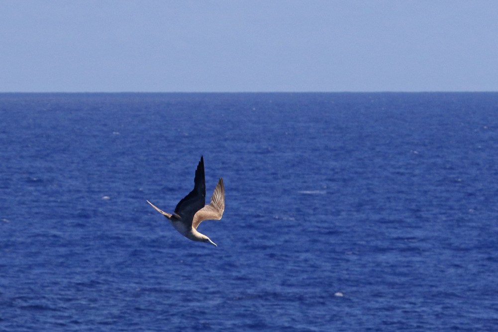 Three species of booby were commonly seen around the ship, chasing flying fish or roosting on the superstructure. This an adult Brown Booby.