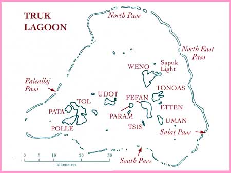 “Truck atoll” was the Empire of Japan’s main naval base in the South Pacific theatre during World War II. It was the site of a major U.S. attack during Operation Hailstone in February 1944, and Operation Inmate, a small assault conducted by British and Canadian forces during June, 1945.