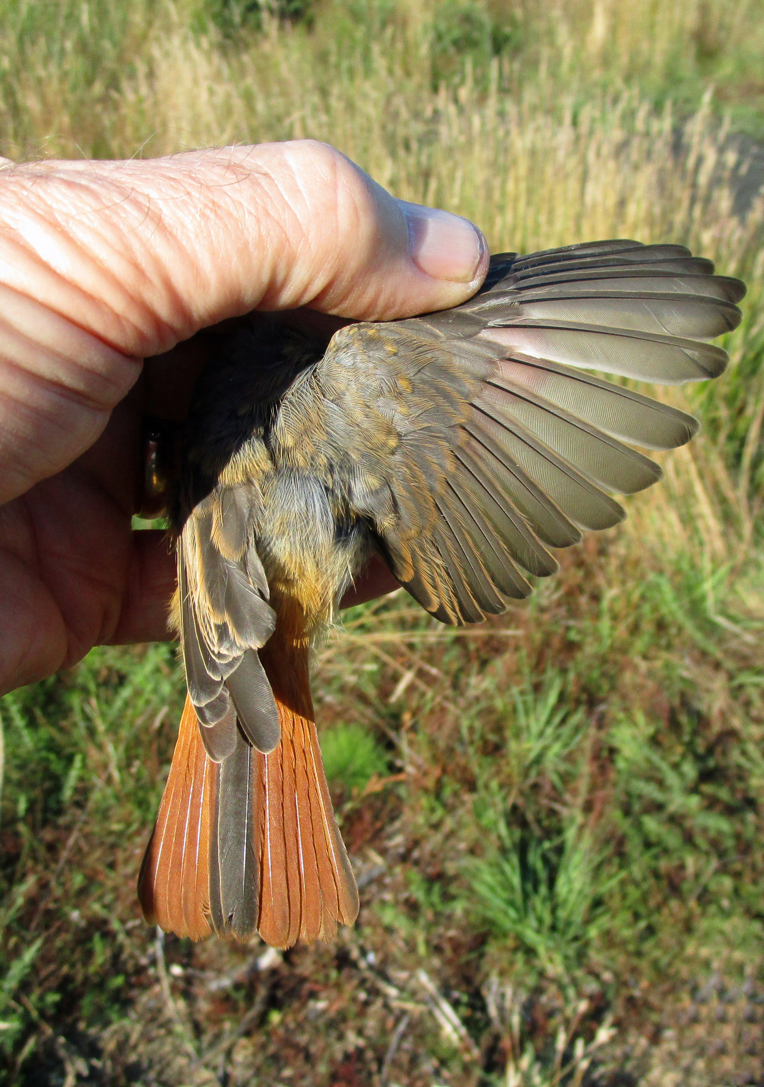 One of the most attractive migrants that we see at Durlston is the Common Redstart, this first year was ringed on 18th August ….