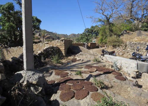 These are the cow-turd piles that the villages construct as the fuel store for cooking and heating.