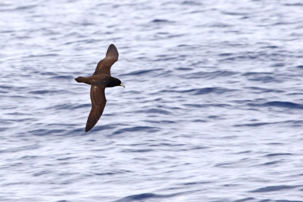 … and what appeared to be the incredibly rare Fiji Petrel. I was slow getting on to this bird when it was first found and struggled to pick it up. The situation was made worse as ace Japanese seawatcher Hero Tanoi called ‘it’s got a black body’ unfortunately in the commotion all I heard was ‘it’s a Black Noddy’ which isn’t rare at all! Fortunately the ship was turned round, a chum slick was laid and the bird was encountered again. The known breeding population near Fiji is only about 50 pairs but as there have been other sightings in the Western Pacific it may be that there is an undiscovered population there, alternatively these birds may be a different species. This photo of an undoubted Fiji Petrel is by Dr. Jorg Kretzschmar/NatureFiji-Mareqeti Viti Fiji.
