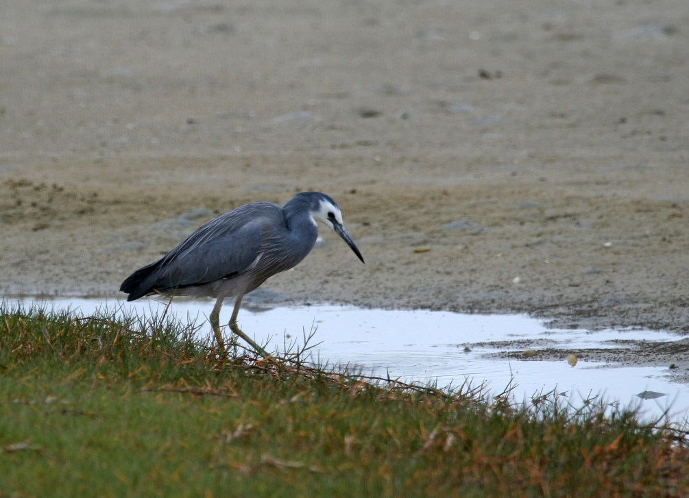 We stopped at the wader spot spot of Miranda. The waders were some distance away as the tide had dropped but we were able to identify Wrybills and Double-banded Plovers among the many Bar-tailed Godwits. More approachable birds included this White-faced Heron …
