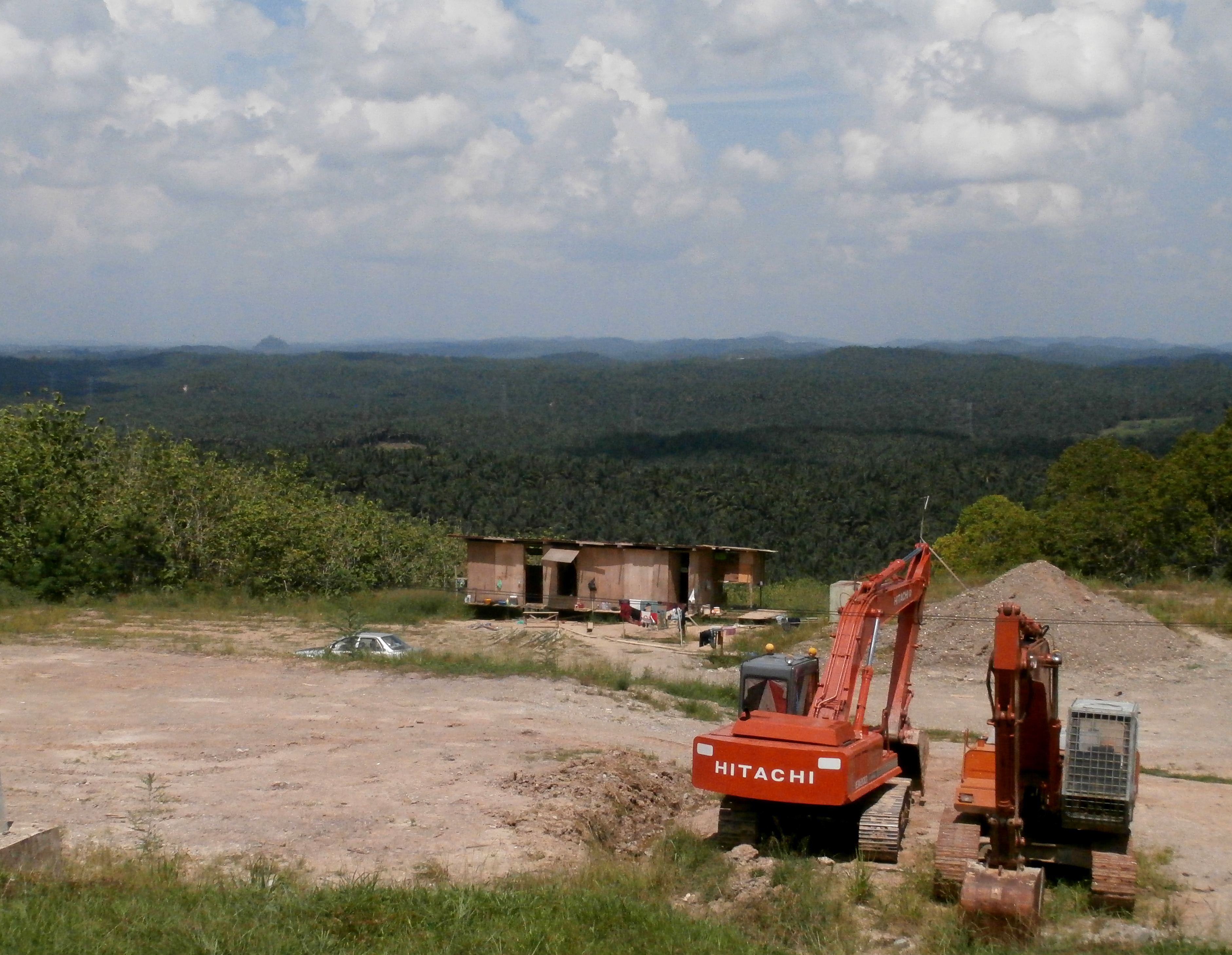It must be emphasised that although Borneo has the reputation of being a wild, remote place this is far from the truth. Places like Kinabalu National Park are the exception. Away from these islands of natural habitat Borneo is a sea of oil palm plantation. Ignore the construction in the foreground. The background shows oil palm to the horizon.