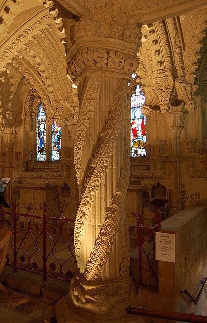 As I said before, although not know so widely before the publication of The Da Vinci Code, the chapel has always been a source of mysticism and wonder, as a drawing from ‘Heath’s Picturesque Manual’ from 1835 shows. Here on the left the Mason’s Pillar and the far superior Apprentice’s Pillar can be seen.