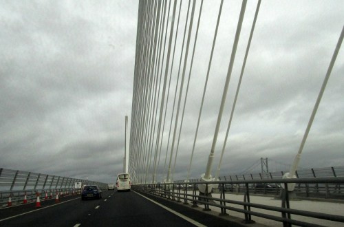We left Roslin and skirted Edinburg on the ring road and crossed the Firth of Forth on the new Queensferry Crossing. Only opened this August at a cost of £1bn it is already (as of early December) undergoing closures for resurfacing. Of course it was Margaret who took this photo and not the driver.