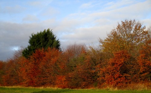 The Chapel is situated on a rise above the town of Roslin. Behind is a wooded gully and even in mid-November many of the trees were still sporting their autumnal colours.