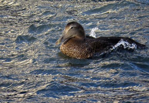…. the well camouflaged females (female Eiders of course pluck their breast feathers to line and insulate their nests, the original eiderdown) ….
