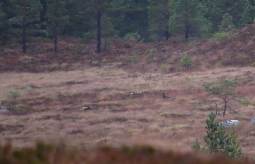 In spite of the weather we saw other good birds during our stay, a flock of crossbills, most likely the endemic Scottish Crossbill, plus Dipper and genuinely wild Greylag Geese, but pride of place goes to this distant male Black Grouse seen on the climb up to the Cairngorm car park. It might have distant but it looked really good in the scope.