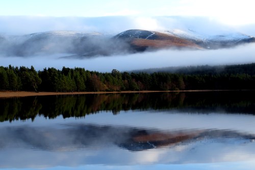 As we returned to Aviemore we stopped at Loch Morlich where the mountains formed a perfect reflection on the water ….