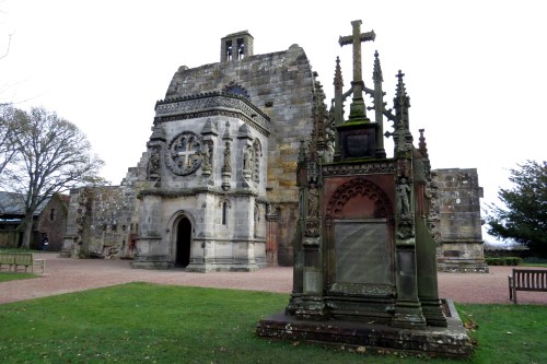 The Chapel is situated on a rise above the town of Roslin. Behind is a wooded gully and even in mid-November many of the trees were still sporting their autumnal colours.