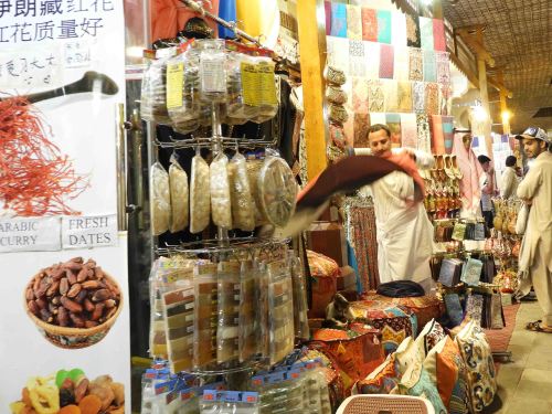 We crossed Dubai Creek by traditional dhow on our way to a traditional market …