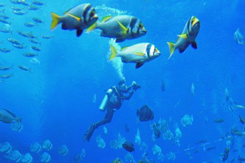 … guests can even scuba dive or rent a room with a window onto the aquarium. Imagine waking up to see a shark float past your bedroom window.