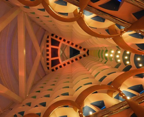 This hotel displays an ostentatious level of opulence and is completely ‘over the top’. This is the view looking upwards from the foyer.