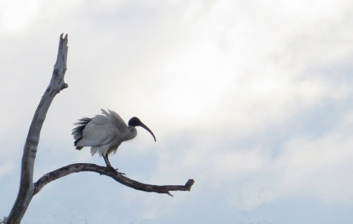 As the mercury rose we were obliged to get out of the open. Fortunately there was some shade by the camp site shop where a Straw-necked Ibis strolled round in the open (note the straw-like feathers on the lower neck).
