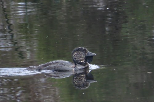 …. the bizarre Musk Duck, the male of which has a huge black dewlap under the bill ….