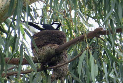 …. the ubiquitous Magpie-lark (a relative of the monarch flycatchers and not either a magpie or a lark) ….